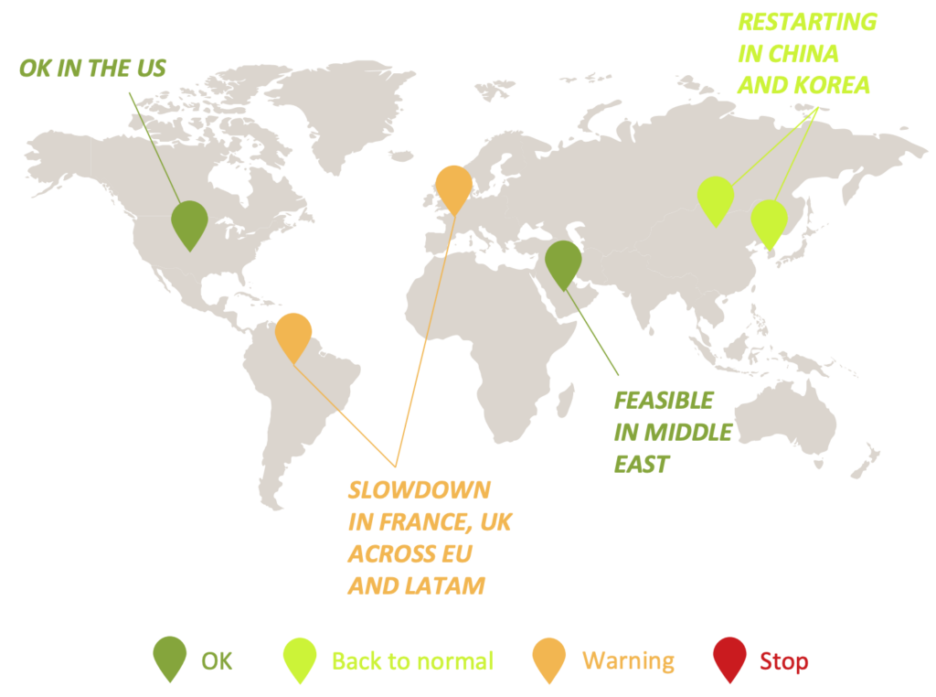 - Data-collection feasibility is currently OK in the US and the Middle East