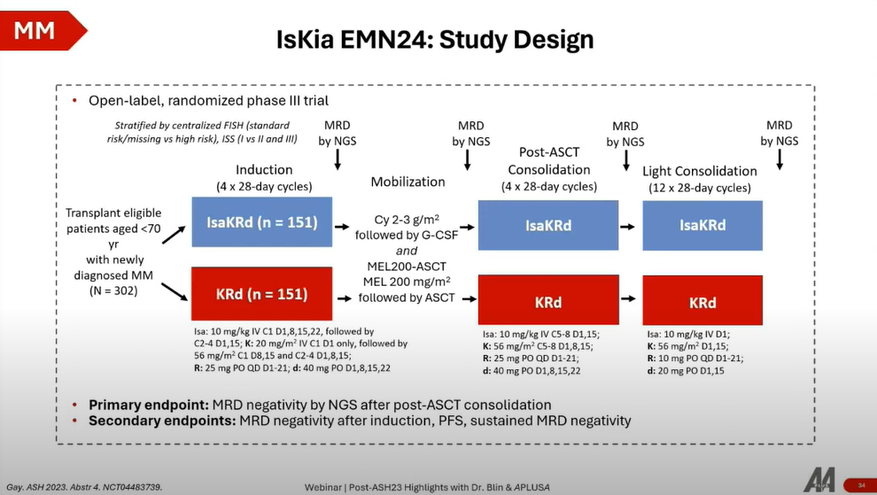 Phase III IsKia EMN24 trial of IsaKRd vs KRd for newly diagnosed MM following post-ASCT consolidation
