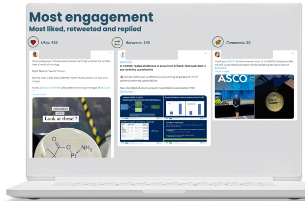 Most retweeted: This post highlights abstract 12005 which presented topical diclofenac as preventing hand-foot syndrome in pts receiving capecitabine.