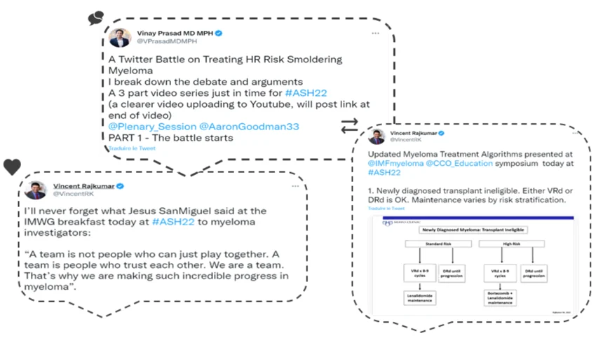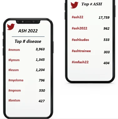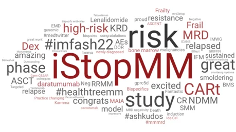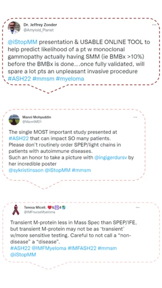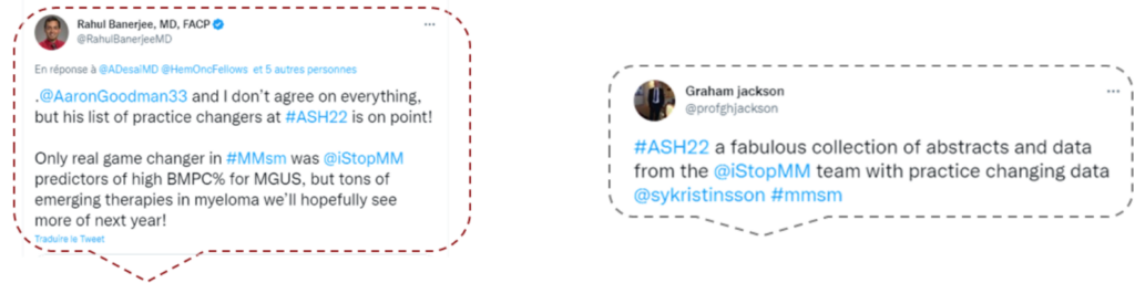 Also of note, the use of the hashtags #imfash22 signifying the international Myeloma Foundation members’ attendance at the congress.