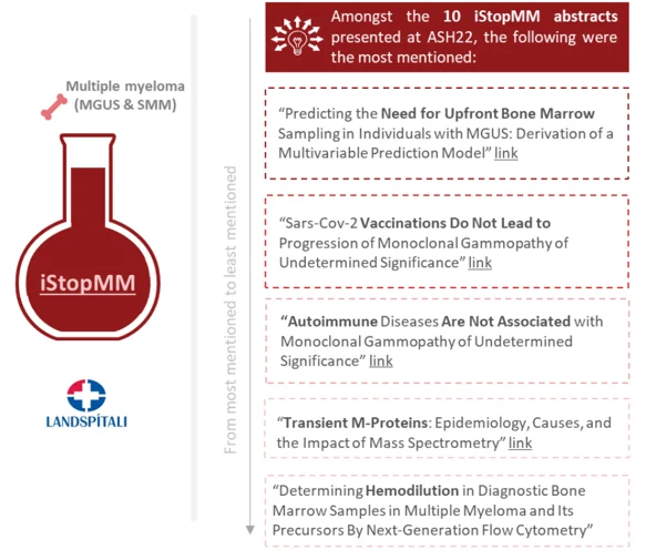 The iStopMM trial (Iceland Screen, Treats, or Prevents Multiple Myeloma) is described as the largest scientific study conducted in Iceland. Updates from this trial generated interest and enthusiasm from HCPs who deemed them practice-changing. The abstract “Predicting the Need for Upfront Bone Marrow” particularly stood out.