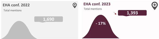 The official hashtag #eha2023 was the most used one with the variation #eha23 in second place.