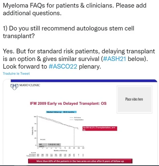 Influencer Dr. Vincent Rajkumar shed light on Multiple Myeloma treatments. The Twitter thread summarizes the treatments used in Multiple Myeloma. The thread, mostly educational, was created in anticipation of the results presented during the different ASCO events as a reference to what might come during the event itself.